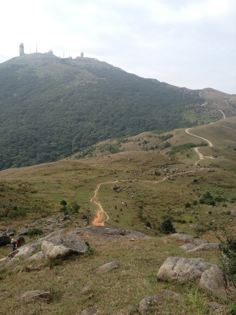The Section 8 of MacLehose Trail starts from Lead Mine Pass (鉛鑛凹) and finishes at Route Twisk (荃錦公路), with overall length of 9.7 kilometres. We went hiking on Nov. 11 along the Section 8 of MacLehose. We climbed over Hong Kong’s highest mountain — Tai Mo Shan, 957 metres high, and followed the zigzag raod down to Route Twisk. There is no public transportation to the Lead Mine Pass, so we went to Yuen Tun Ha (元墩下) first.
